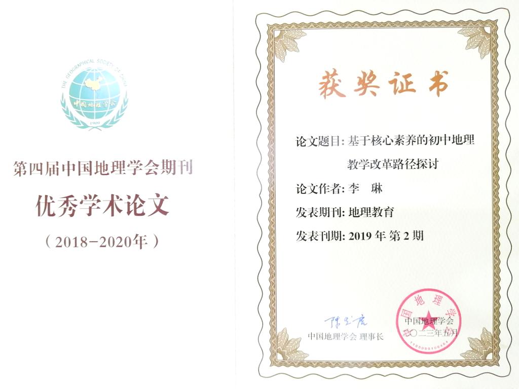 喜报!换妻 《地理教育》刊发论文荣获“第四届中国地理学会优秀学术论文(2018-2020)”