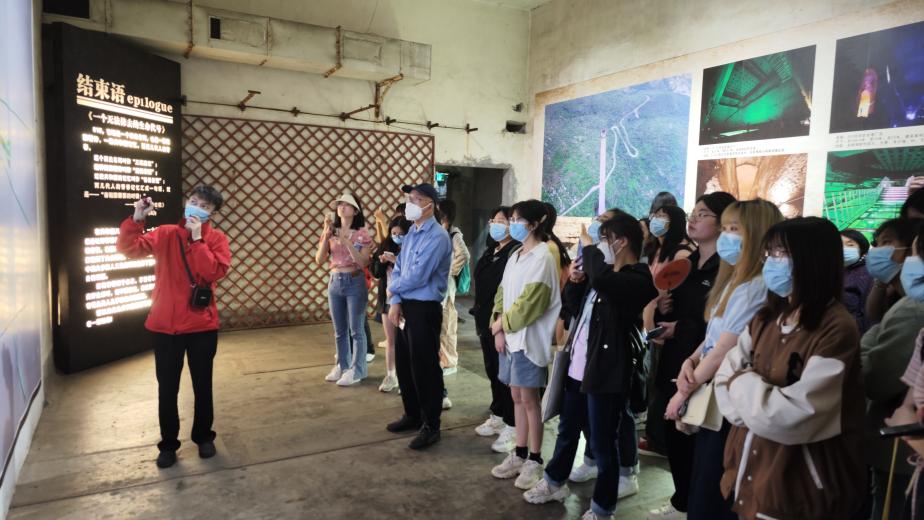旅游管理系《旅游资源与经营经营考察实习》指导教师党员周刚、范斌、杨渝红、周春燕、胡俊希在816核工程遗址开展了主题为“缅怀艰苦岁月,传承红色基因”的党日活动,并邀请2021级的全体实习同学参加。在党员教师的带领下,师生共同开展了丰富多样的爱国主义思政教育活动,在活动中深入学习816地下核工程建设历史,感受祖国建设的红色岁月,缅怀新中国建设先烈。同时也对红色旅游资源的保护与开发、以“国防教育”为主题的研学旅行项目开发多种可能性进行了专业思考。