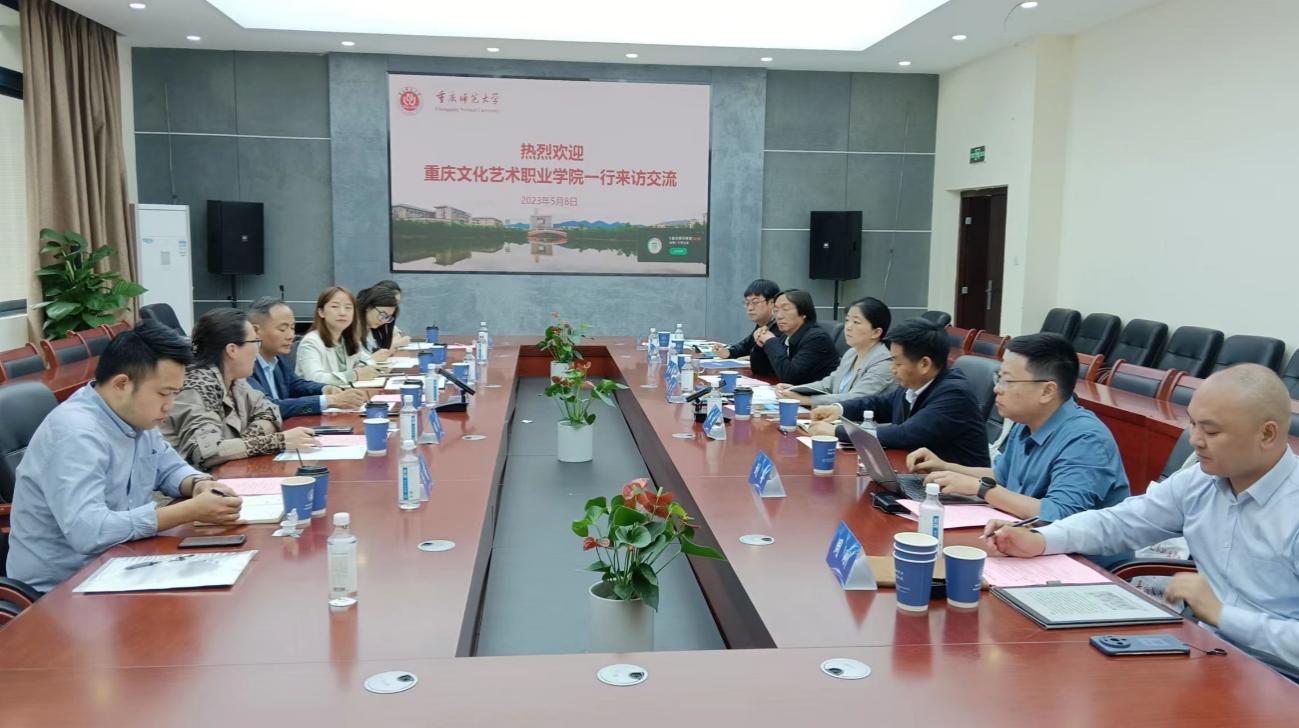 5月8日下午,重庆文化艺术职业学院党委副书记胡刚、重庆文化艺术职业学院副院长胡莉一行六人到换妻
