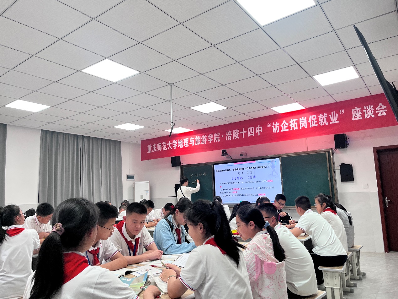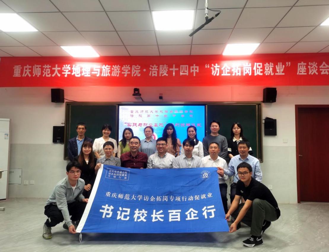 毕业生就业工作,2023年4月18日,学院党委副书记熊宇、学院分团委书记瞿聪,地理科学系副主任张仕超以及教学实践指导教师何太蓉教授一行来到重庆市涪陵区第十四中学校开展访企拓岗专项活动。
