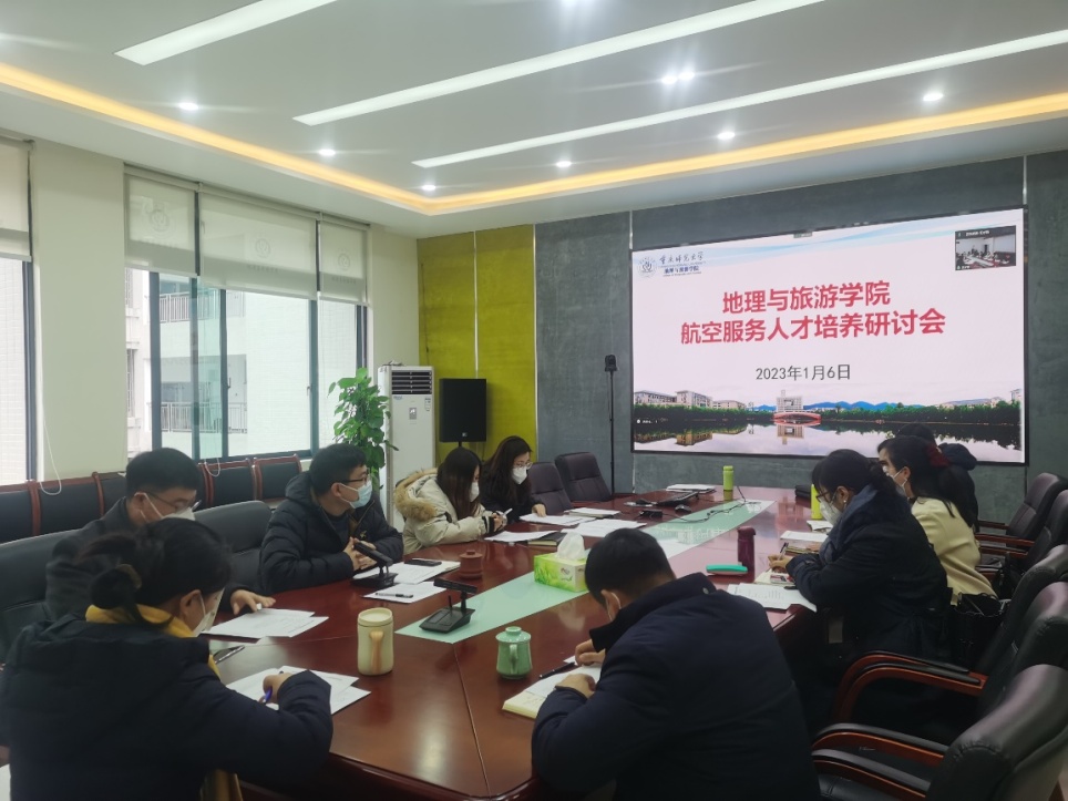 与北京广慧金通教育科技有限公司合作办学的特色专业。历经十二年的办学历程,如何进一步深化校企合作、优化人才培养方案和加强学生管理力度,学院于2023年1月6日上午,以线上线下结合的方式组织召开了航空服务人才培养研讨会。与会人员有学院党委书记胡芳、副院长韦杰(主持工作)、党委副书记熊宇、院长助理张云耀,学工办主任瞿聪,航空服务艺术与管理系教研室主任谢媛媛、副主任罗杰,金通公司重庆区域副总杨曦、教师代表以及校企双方辅导员代表。