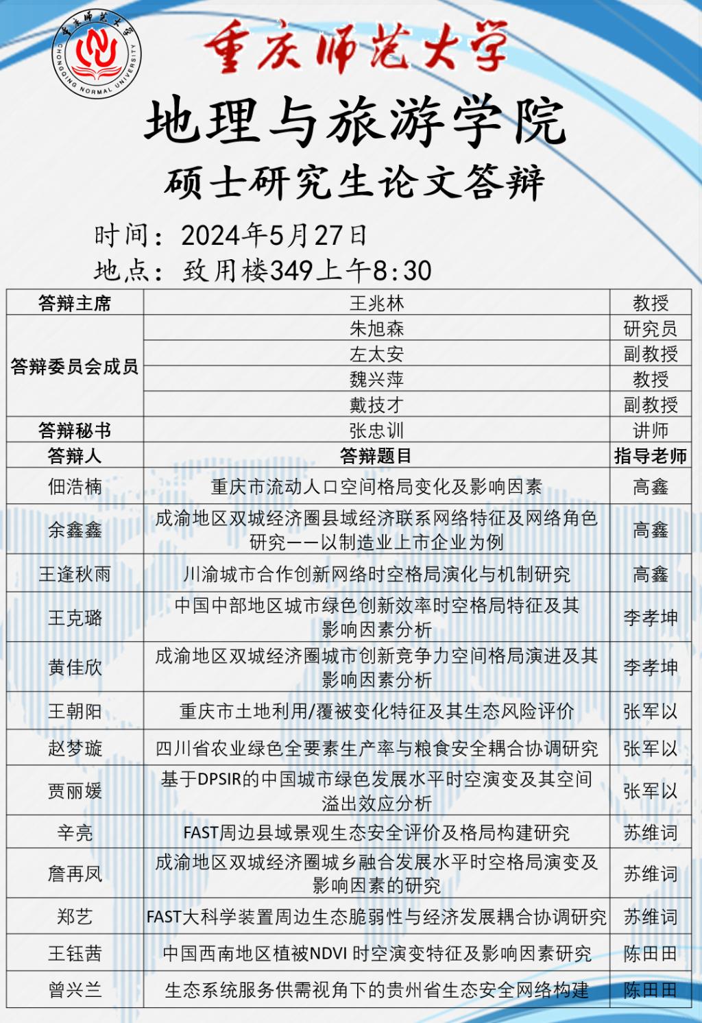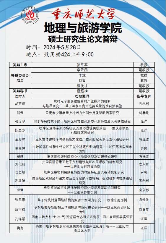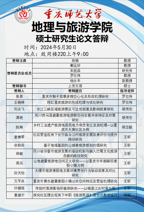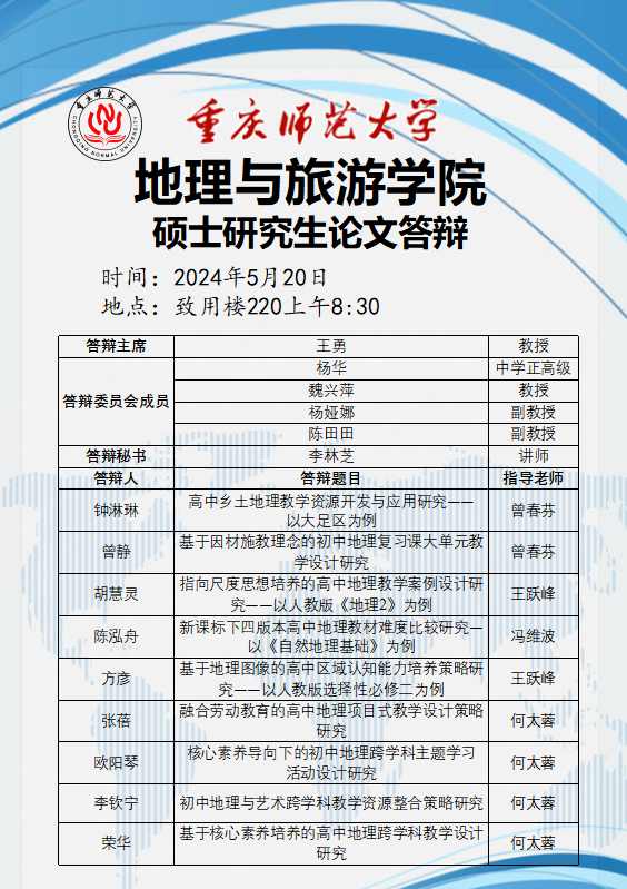 换妻 2024年硕士研究生论文答辩安排
