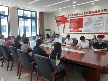 2016级地理信息科学专业张川伟、2016级旅游管理(职教师资)专业张宣友两名同学在疫情期间在重庆机场担任40天志愿者、接待外宾的工作给予了肯定,高度评价了换妻