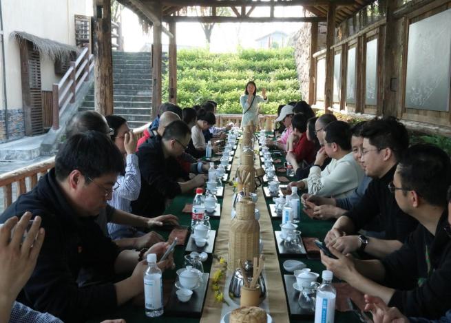 随后,讲解员带领全体人员参观英雄村。英雄湾村兴于明清驿站文化,益于抗战红色文化,强于中国工业文化,村里有着丰富的旅游资源和文化资源。习近平总书记为乡村振兴战略指明的五个具体路径,即推动产业振兴、人才振兴、文化振兴、生态振兴和组织振兴,在村子里都有相应的规划设计与载体表现。英雄湾村利用闲置民房改造,引入社会资本和非遗文化项目传承,围绕红色美丽乡村主题文化,打造乡村美学生活体验场馆,延续红色文化教育,丰富文化振兴的内涵,亦是助力乡村振兴的“新引擎”。党员同志们一边参观、一边听取驻村讲解员的介绍,随后在鲁班木工坊做手工感受工匠精神,在布艺坊感受刺绣的魅力,在巴人茶学院茶艺坊的院坝里亲自泡茶体验茶文化。活动中的学习交流与体验,进一步加深了党员同志对乡村振兴带来的村落整治、人居环境、产业形态、研学结合的直观感受与感慨,也找到了旅游学类专业与市场、与乡村在国家政策下开展农文旅融合的更多契合点,一致认为全面推进乡村振兴,是贯彻落实党的二十大精神的具体实践,也是学院服务地方经济社会发展的重要举措。学院将充分发挥高校智库优势,利用专业、人才在乡村振兴工作中的带动作用,多方式多举措助力乡村振兴,助推未来乡村高质量发展。