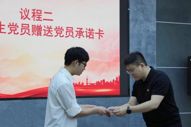 在2025届毕业生教育活动中,学院还组织召开了毕业生党员座谈会,与会党员分享了在校期间的成长感悟,并就学院建设积极建言献策。座谈会上,党委书记胡芳、党委副书记熊宇向毕业生党员赠送了党员承诺卡,勉励大家牢记党员身份,践行初心使命。并同步启动了“书香绿意·共植未来”做好一件身边实事主题活动,毕业生党员捐赠书籍与绿植等闲置物品妆点学院空间、美化环境、促进知识共享,用实际行动践行党员责任,为母校留下美好印记。