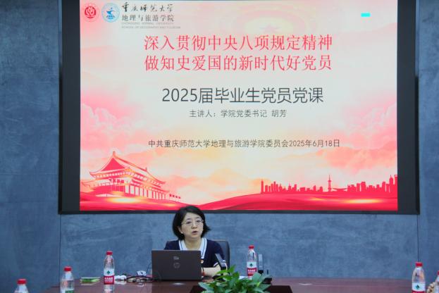 为深入贯彻落实全国教育大会精神,引导毕业生党员厚植家国情怀、传承重师精神,以坚定理想、勇于担当的姿态迈向人生新征程,6月18日上午,换妻 党委组织开展2025届毕业生党员“七个一”教育实践活动之专题党课。本次党课以“深入贯彻中央八项规定精神、做知史爱国的新时代好党员”为主题,学院党委书记胡芳主讲,39名毕业生党员及党委副书记、组织员共同参加。