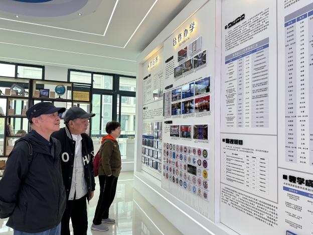 午后,学院邀请离退休教职工重返校园,参观新建成的院史文化陈列室。展馆以文图并茂、视听融合为特色,通过珍贵历史影像、文献档案及实物展陈,生动再现学院七十年发展历程,尤为引人注目的是,展馆还特别设置了校友名录查询系统,每一位校友都可以在这里找到往昔足迹,为广大校友搭建起沟通的桥梁。老同志们驻足于展板前,结合亲身经历补充院史细节,主动捐赠珍藏多年的历史照片、教案手稿等资料,为展馆建设注入鲜活记忆。离退休教师们表示:“陈列室不仅是一份厚重的历史答卷,更是一堂生动的思政课,激励后辈接续奋斗!”参观老教师还结合自身经历、对展馆建设等建言献策,提出了很多务实建议。