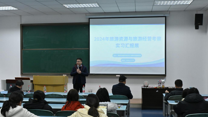 为进一步提升2023级旅游管理专业学生的实习成效,丰富其实习经验,强化其对旅游行业的认识与理解,培养专业素养和实践能力,学院精心筹备数月,于2024年12月19日,在求是楼127室成功开展了一场以“旅游实践风采,青春梦想舞台”为主题的实习汇报展。