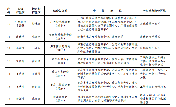 我校野外科学观测研究站成功入选生态环境部 生态质量综合监测站