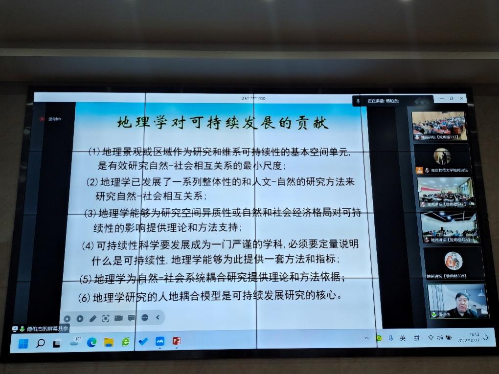 地苑讲坛第二讲在致用楼117举行。中国科学院院士傅伯杰研究员为我校师生作了题为“地理学与可持续发展”的报告。讲坛线上线下同步进行,线上采用微信视频号直播方式,听众超过1700人次;换妻