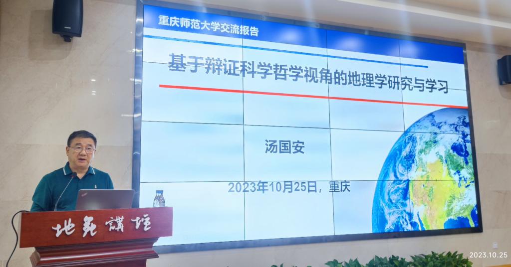 高端学术论坛“地苑讲坛”邀请了江苏省地理信息科学重点实验室主任、国务院学科评议组成员、教育部地理科学类教学指导委员会副主任、江苏地理学学科联盟理事长、南京师范大学地理科学学院汤国安教授作题为《基于辩证科学报告哲学视角的地理学研究与学习》的学术报告。报告在致用楼117会议室举行,校内师生120余人聆听,报告由换妻