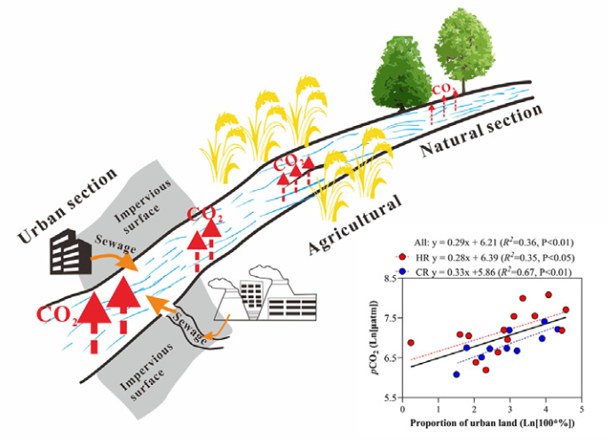 硕士研究生王继龙以第一作者身份在国际著名期刊Science of the Total Environment (中科院一区top,IF=7.96)发文对人类活动影响下的城郊河流CO2排放与流域城市化之间的关系做了探讨,通讯作者为王晓锋副教授。论文主要研究结果如下: