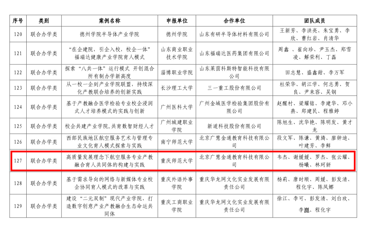 该案例是十三年来我校与北京广慧金通教育科技有限公司合作联合开办航空服务艺术与管理专业的教学成果的充分呈现。该典型案例的被认定,亦是对我校航空服务专业产教融合育人成果的高度肯定。专家评委一致肯定该案例树立了典型,形成带头示范作用,案例具有可复制、可推广的积极效应,将有利于进一步探索校企合作新形式、创新产教融合新模式以及构建产教融合新格局,有利于推动高等教育高质量发展。
