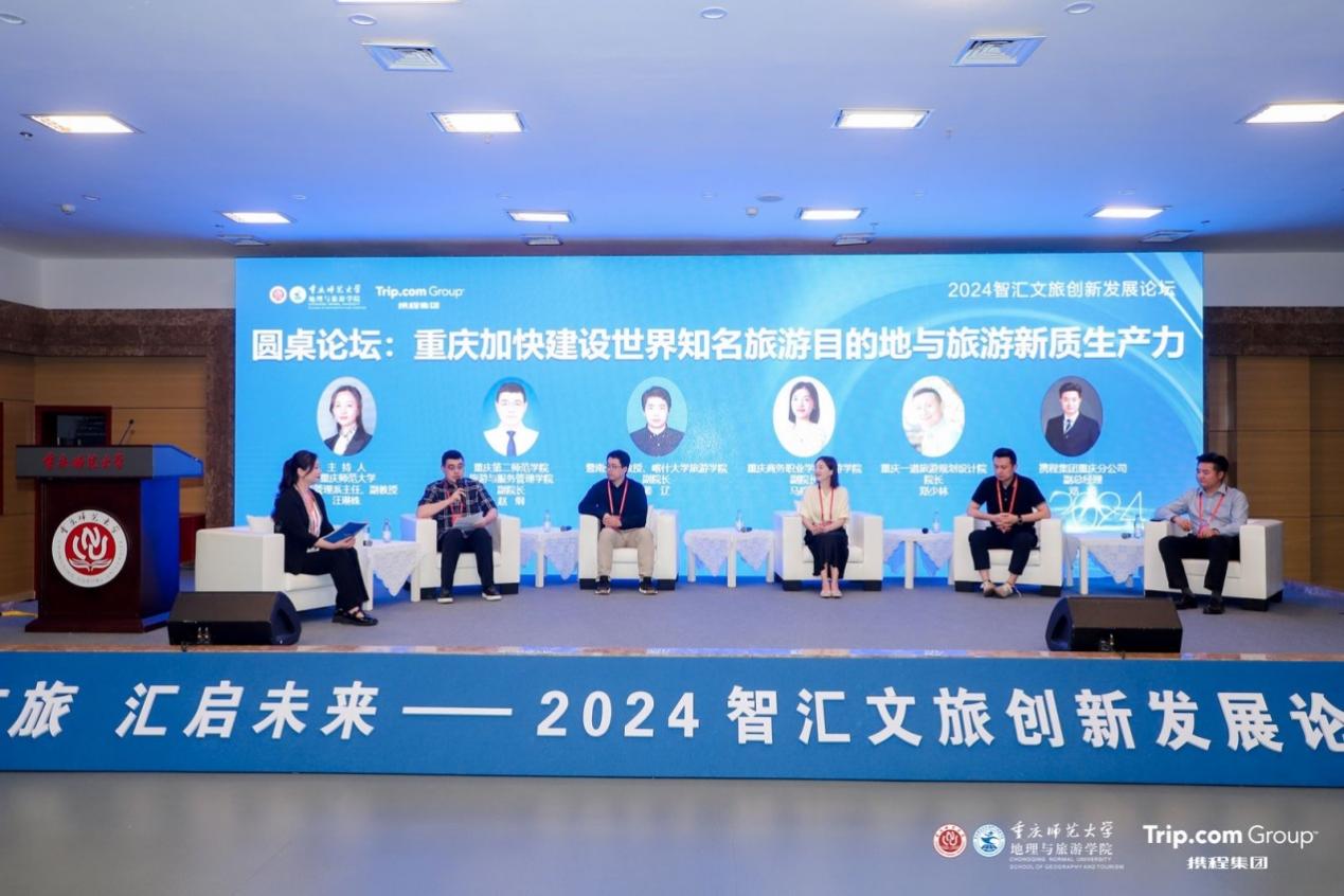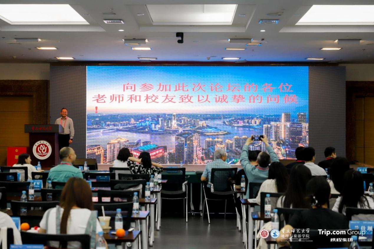 论坛圆桌论坛围绕“重庆加快建设世界知名旅游目的地与旅游新质生产力”主题,来自重庆第二师范学院旅游与服务管理学院副院长赵纲先生、暨南大学教授、喀什大学旅游学院副院长姜辽先生、重庆商务职业学院文化旅游学院副院长马建林女士、重庆一道旅游规划设计院院长郑少林先生、携程集团重庆分公司副总经理邓琦先生,分别进行了深入的主题分享与交流。赵纲校友围绕重庆旅游新质生产力发展进行了观点分享,姜辽校友围绕旅游新质生产力与高质量发展分享了看法,马建林校友从旅游职业教育的视角切入谈旅游新质生产力发展,郑少林校友以重庆加快建设世界知名旅游目的地建设提供了有益建议,邓琦校友从培养互联网旅游人才方向切入深入浅出地分析了如何发展旅游新质生产力。五位校友为重庆快建设世界知名旅游目的地与旅游新质生产力提供了深刻的学术见解和丰富的实践经验参考。