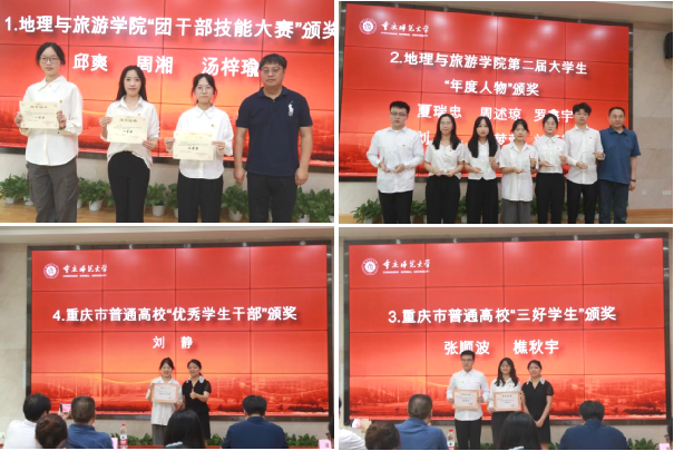 第二届大学生年度人物”“重庆市普通高校三好学生”“重庆市普通高校优秀学生干部”的获奖同学颁奖。苑兆瑞同学作为学生代表发言,她分享了自己在活动月的心得体会,鼓励大家珍惜时光、奋勇向前。