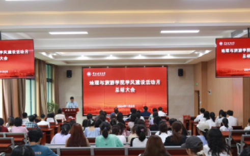 下午16时30分,总结大会正式开始,全体起立,奏唱国歌。在热烈的掌声中,熊书记介绍了此次学风建设活动月的开展情况,指出通过“学思践悟”系列活动,学院开展了全方位、多层次的学风建设实践,共组织举办十六项主题活动,累计参与人数达2000余人次,发布“重师学工”公众号3篇、地旅学院官网新闻稿2篇、“重师地旅人”公众号推文16篇。他强调,学院始终将学风建设视为学生工作的重心,致力于培养“四有”好老师,为国家和社会输送优秀人才。