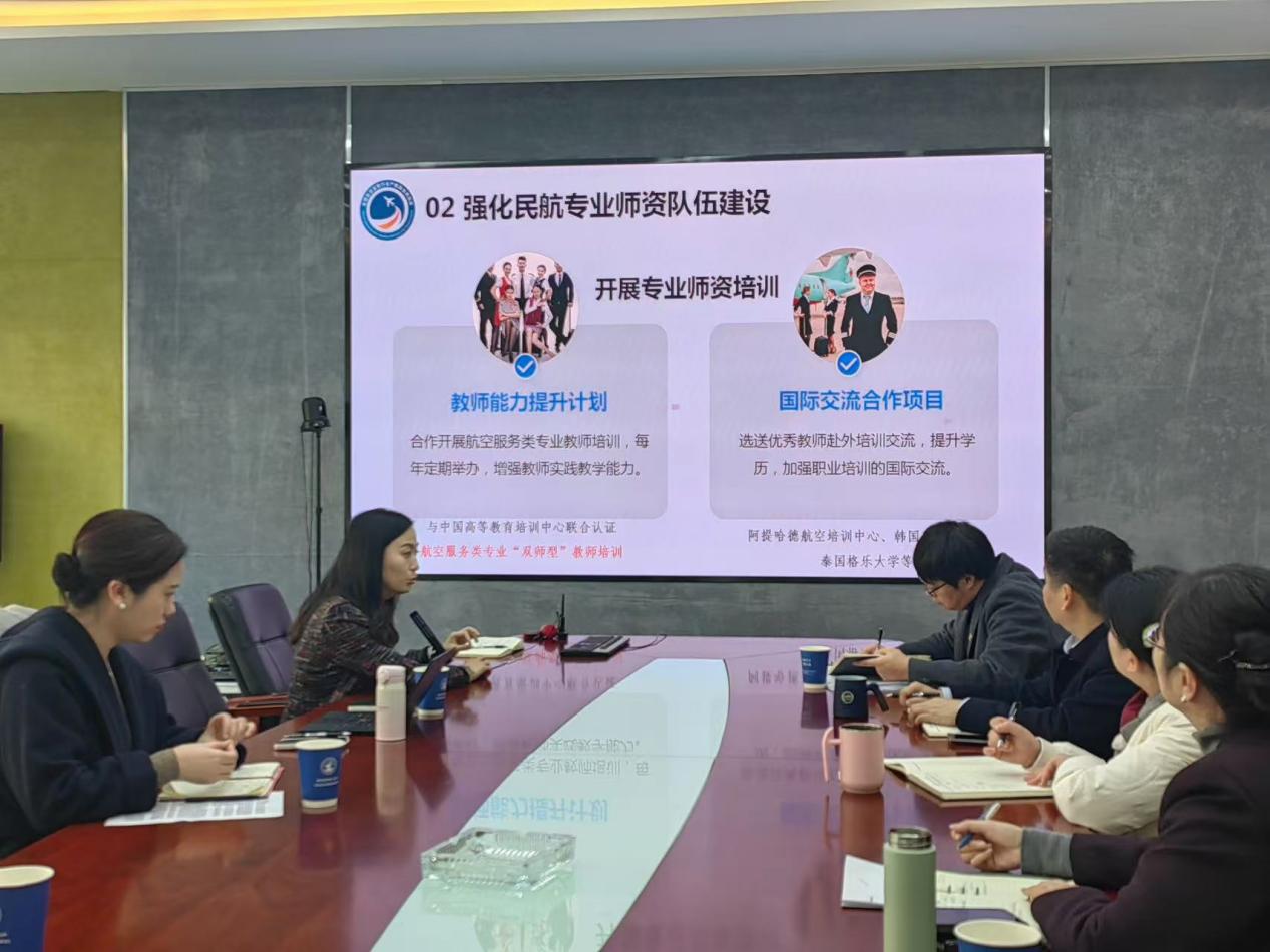 座谈交流。学院党委书记胡芳、执行院长韦杰、航空服务系主任谢媛媛参加了座谈,副院长张云耀主持了座谈交流活动。