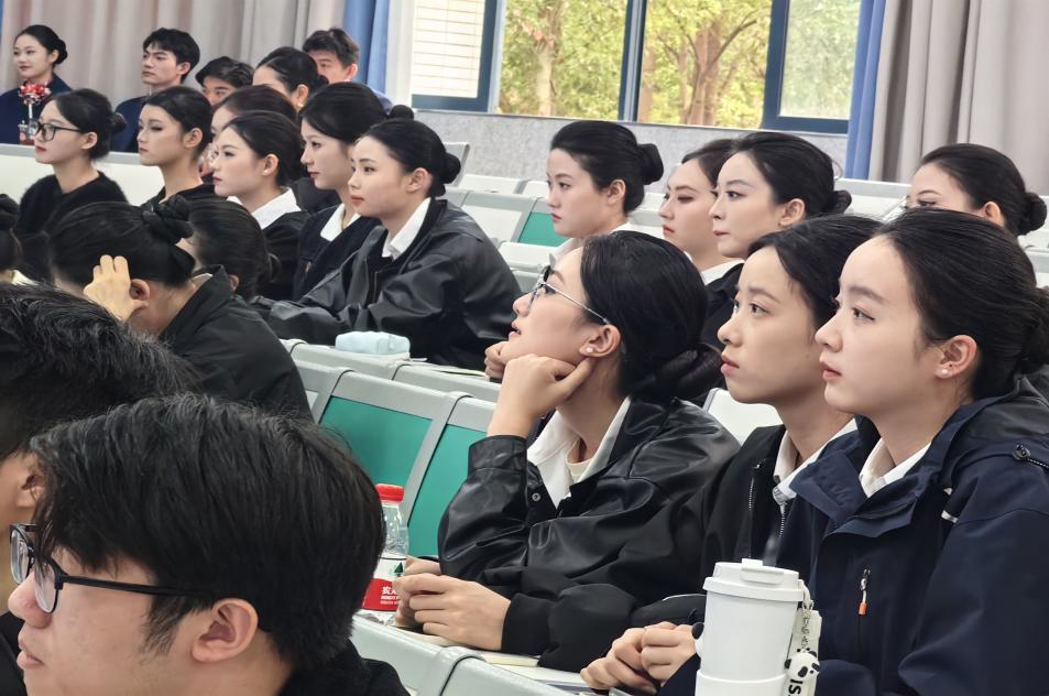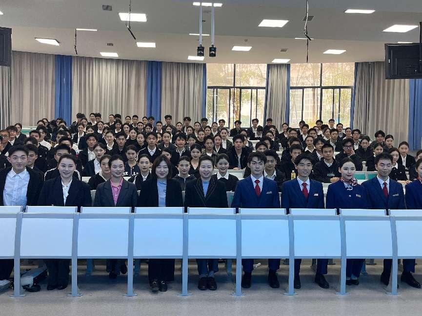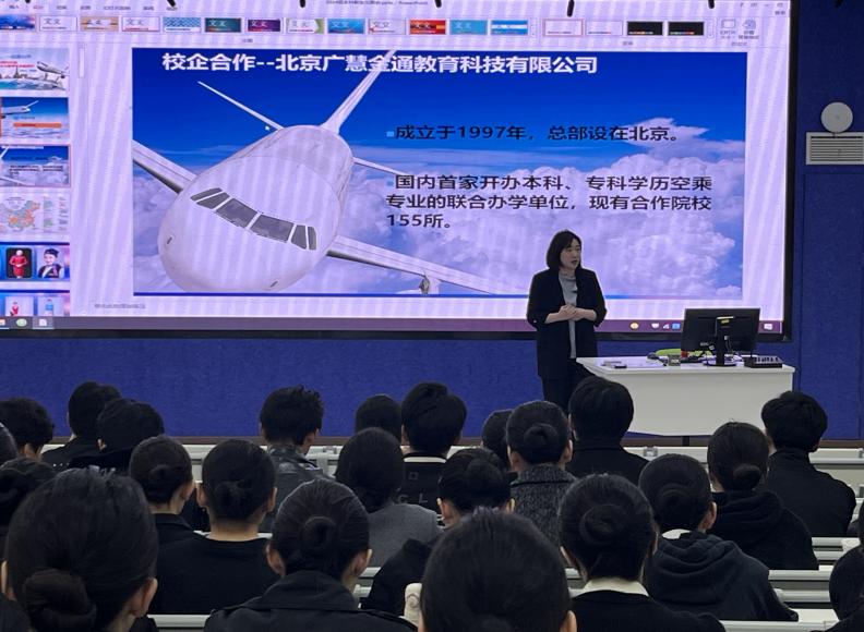 本次,由金通驻换妻 工作处副主任毛文静老师介绍专业师资团队、校企合作方北京广慧金通教育科技有限公司提供的教学设备以及前往阿提哈德航空培训学院学习的经历和历届学长学姐参加各类特色活动的精彩表现。