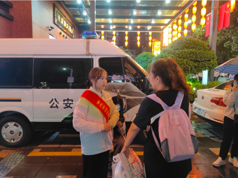 随着国庆假期来临,洪崖洞也迎来了游客出行高峰期,在做志愿者的六天里源源不断的游客涌向洪崖洞,我和团队的小伙伴每天都要为很多游客解答疑惑、指引方向。虽然阴雨绵绵但是游客朋友们热情不减,我们也一直坚守岗位站好每一道岗,洪崖洞需要游客的赞叹与欢呼,我们也需要游客朋友的笑容,这六天是与同学们和游客们共同成就的几天。