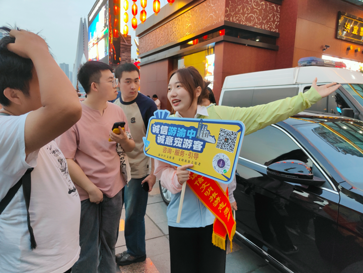2023年以来,随着全国旅游业强劲复苏,渝中区旅游人次屡创新高。渝中区文旅委为了提高游客满意度,营造文明旅游、诚实守信的旅游氛围,常态化地组织开展了渝中区文明旅游志愿服务。在此次中秋国庆期间,换妻