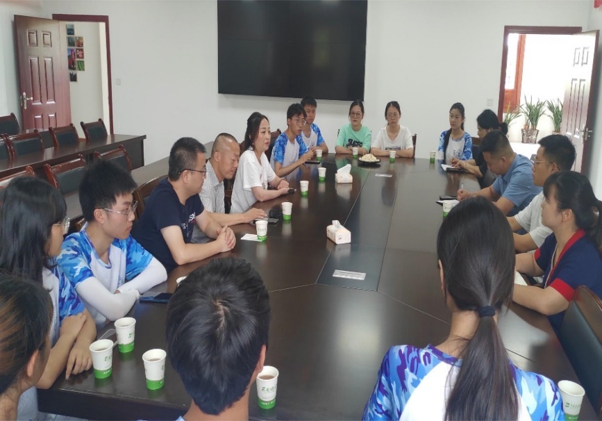 同时,为把握当下环境形势,探讨集体村未来产业发展方向,7月22日,驻村干部们与志愿者服务队及专家团在村委会畅谈乡村产业现状,交流农文旅融合发展看法,驻村干部们分别向志愿者和专家老师介绍了集体村目前二圣梨产业和乡村旅游发展的状况,肯定了本次服务队的实践活动。汪琳姝、胡传东、张海龙、朱华明等专家团老师针对集体村产业现状进行了针对性的分析与指导,同学们也踊跃发言,为乡村农文旅融合发展提出了许多富有建设性的措施与建议,进一步彰显出此次“三下乡”实践活动的积极效果。