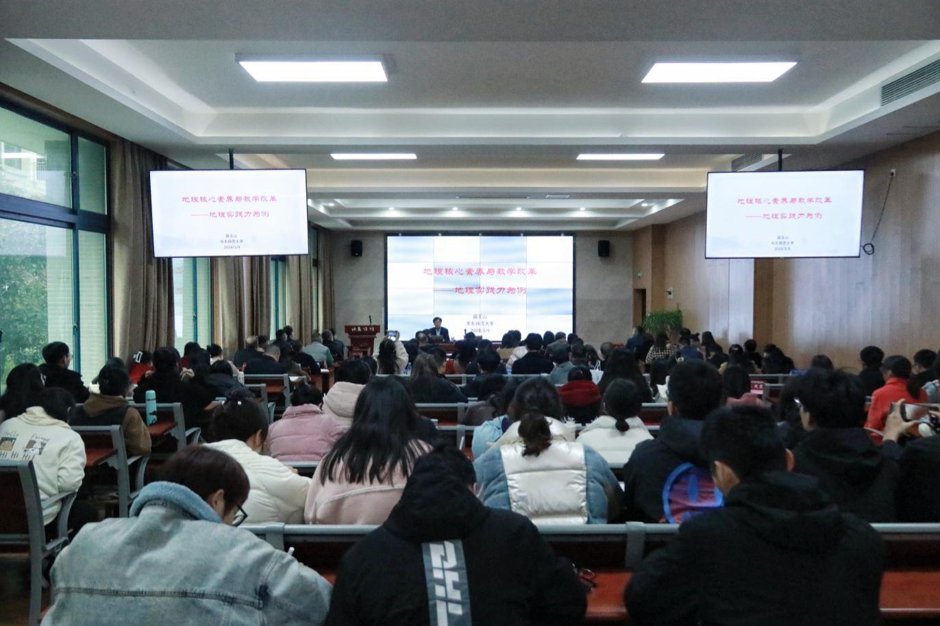 为提高学生地理核心素养水平和教学实践能力,进一步了解中学地理课堂教学改革相关知识。2024年3月9日下午,换妻 特邀华东师范大学段玉山教授针对“地理核心素养与教学改革——地理实践力为例”在学院楼117会议室召开讲座。
