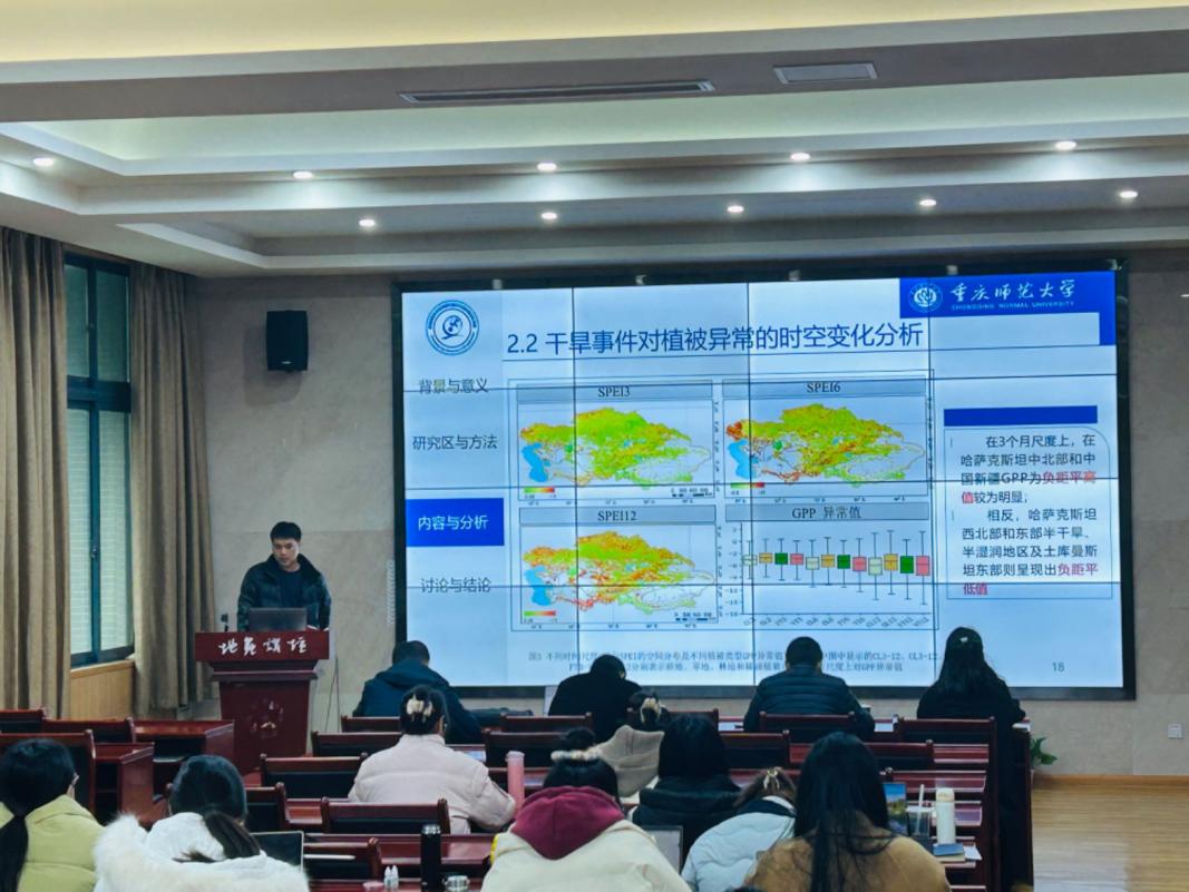 在汇报环节,同学们展示了近期的工作进度和阶段性的研究成果,与现场专家进行了深入的讨论和交流。本次汇报主要涵盖了交通出行、公共服务配置、生态系统服务、极端气候、生态安全和土壤侵蚀等相关研究主题,体现出良好的地理学科与其他学科交叉融合的理念。同时,各项研究工作涉及了重庆市、成渝双城经济圈、三峡库区、长江经济带、中亚地区、全球等多尺度的研究范围,深化了师生对不同区域研究差异的理解。