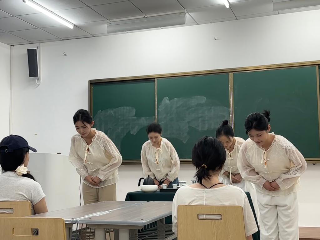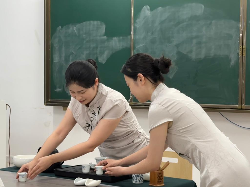 在茶艺冲泡展示环节,同学们身着素雅茶服,行云流水般演绎了温杯、投茶、冲泡、奉茶等传统茶艺流程,同学们不仅掌握了不同茶类的冲泡技艺,更通过文化解说环节深入理解了茶道中蕴含的精神内涵,学生结合茶道演示,讲解中国茶文化的历史渊源、哲学思想和礼仪规范,实现了技艺传承与文化传承的有机统一。