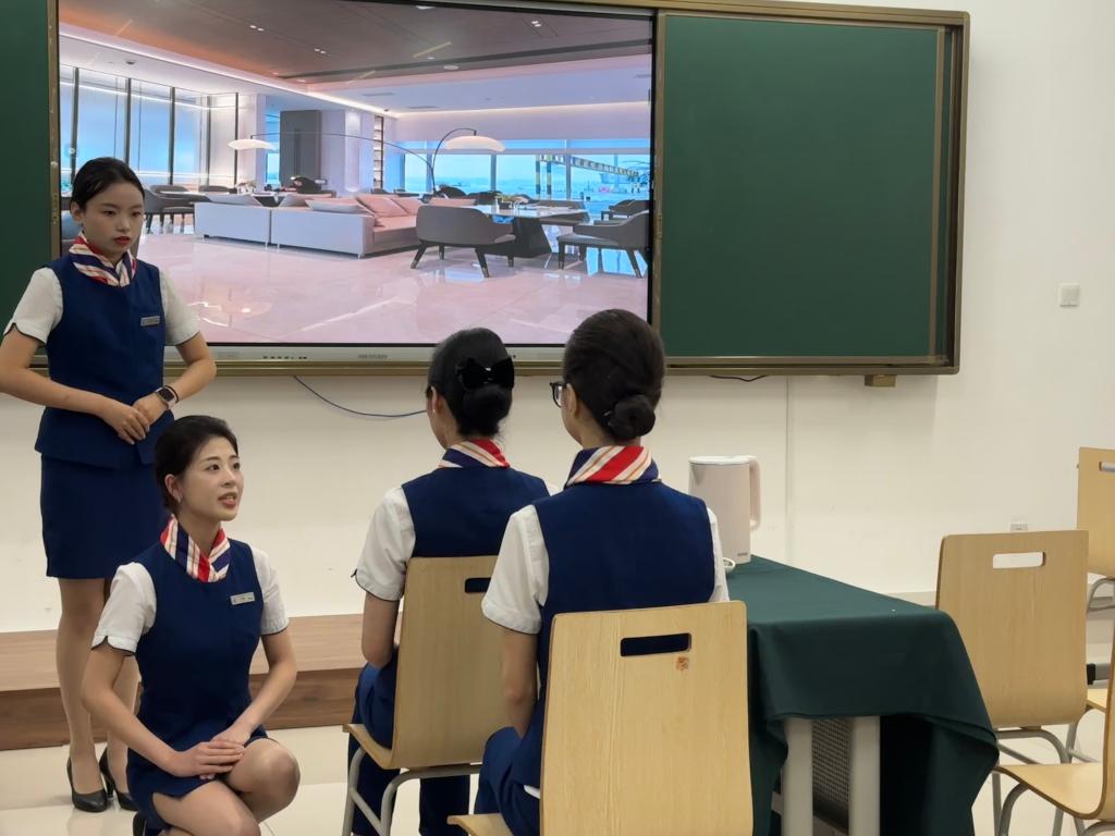 在特色创新的“机上服务模拟”环节中,同学们将传统茶道精神与现代航空服务标准有机融合,在模拟客舱环境中,他们既展现了专业的服务技能,又通过茶艺服务传递出中华文化的独特魅力,充分体现了“以文化提升服务品质,以服务传播文化价值”的教学理念。
